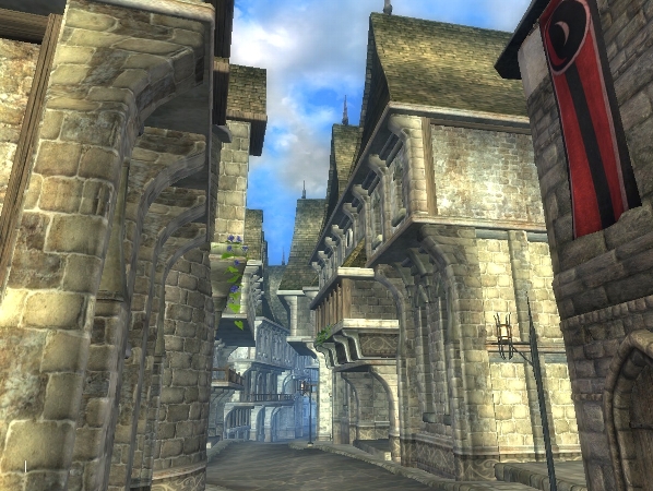 街道を挟むように街が存在し、その周囲を城壁で囲っている頑健な造りの城塞都市。